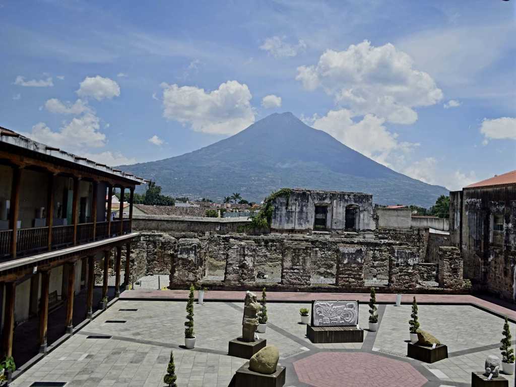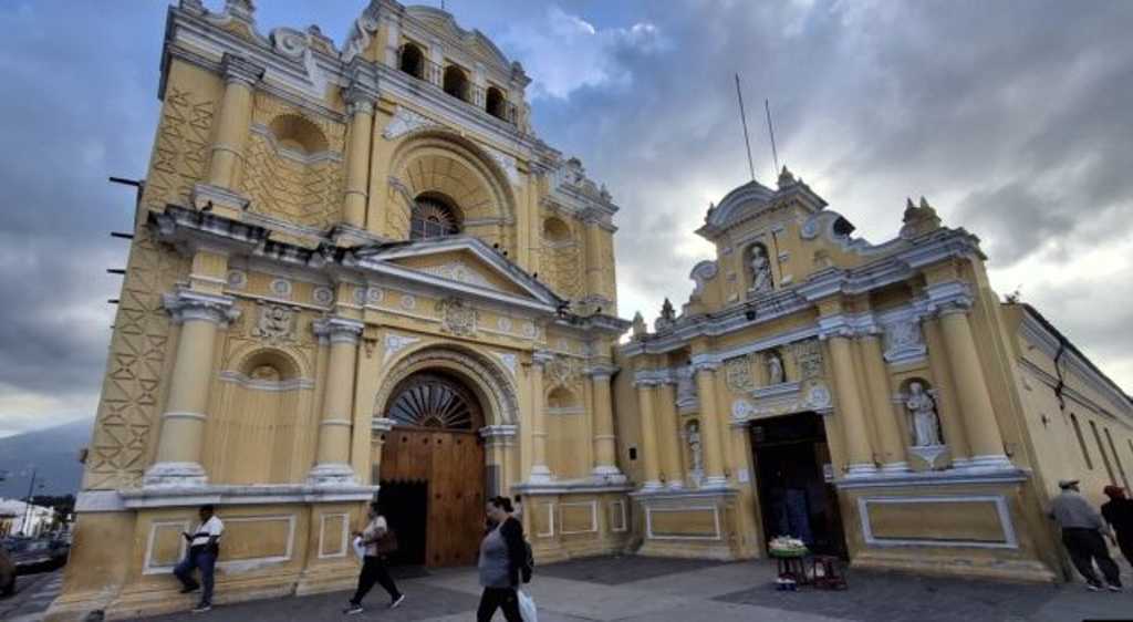 Primero está su escudo, que incluye los tres volcanes que la rodean (de Agua, Fuego y Acatenango), la iglesia de La Merced, la más grande y hermosa, que aguantó los terremotos, declaró el cronista de Antigua.